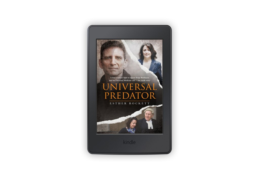 Read the ripping inside story of my fight to expose Serge Benhayon and his Universal Medicine cult. Available worldwide from Amazon, Apple Books, Kobo and other retailers. Packed with facts that have not been made public until now, find out what happened when slippery manipulator, Benhayon, took his vendetta against me to the Supreme Court.