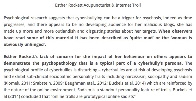 All the cartel’s previous tilts at censorship and harassment have failed, so they’ve resorted to naming me, my profession and workplace address online with claims I’m a cyber-bully, stalker, troll and suffering a mental pathology.