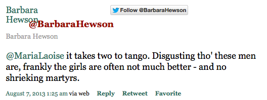 Barbara Hewson has publicly labelled paedophilia victims – in this case a 13 year old girl – as ‘not much better’ than adult offenders.